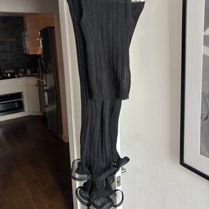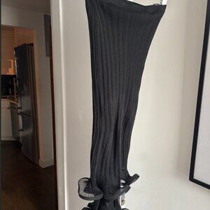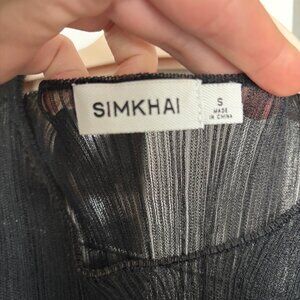 Elevate your wardrobe with this SIMKHAI Kelso Pleated Knit Midi Skirt in sleek black.