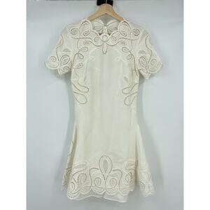 SIMKHAI | Morrigan Linen Mini Dress in Ivory White Lace Fit and Flare 0