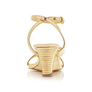 Crafted from golden metallic leather, the 'Rola' sandals are distinctive with their ridged wedge heel and angular square toe. Wear yours with the ultra-coveted 'Rola' bag.