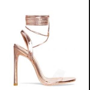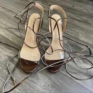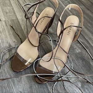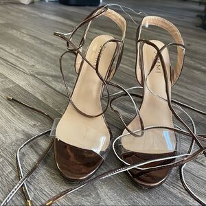SIMMI LONDON Bronze Copper and PVC clear strapping heels