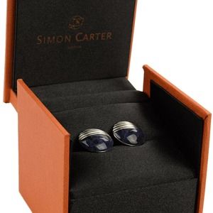 SIMON CARTER Mens Sodalite Blue HALF QUILT Bullet Back Cufflinks NIB