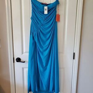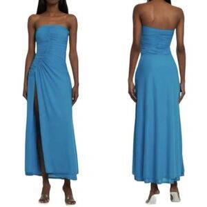 SIMON MILLER Blue Swizzle Strapless Ruched Side Slit Maxi Dress Size Large
