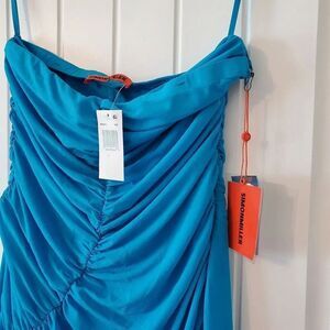 SIMON MILLER Blue Swizzle Strapless Ruched Side Slit Dress