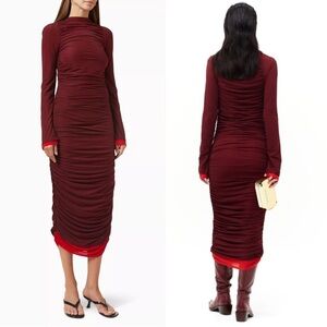 SIMON MILLER Layered Contrast Mesh Ruched Long Sleeve High Neck Bodycon Dress S