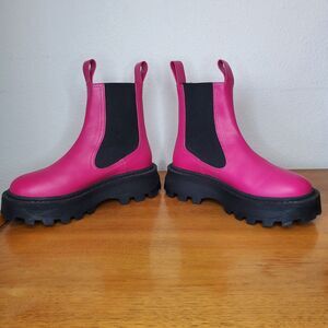 SIMON MILLER Pink Scrambler Boots Pull On Leather Combat Goring Lug Sole SZ 5/35