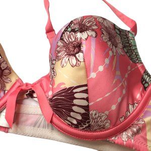 SIMONE PERELE Bra, Made in France. Pink Floral. Pink Bow in Front. Size FR 85 / EUR 70.