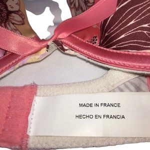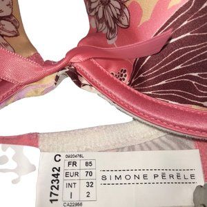 SIMONE PERELE Bra, Made in France. Pink Floral. Pink Bow FR 85 EU 70 US 32C
