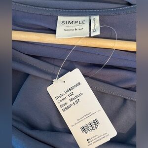 SIMPLE BY SUZANNE BETRO BLUE TUNIC TOP GATHERED DOLMAN SLEEVES BLOUSE size med