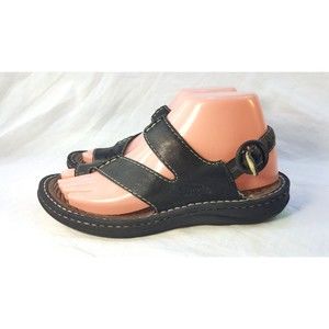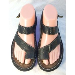 SIMPLE Brand Sandals Black Leather Toe Thong Ankle Strap Sandal Women's Size 6.5