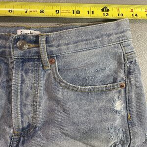 SIMPLE SOCIETY Denim Shorts Distressed Button Fly Raw Hem Y2K Womens 0 24 Blue