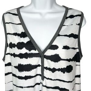 SIMPLE Suzanne Betro Women’s XL Contrast Hem Striped Henley Tank Top