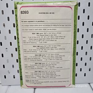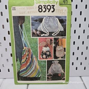 The SIMPLICITY Sewing Pattern #8393 offers 5 different styles of drawstring bags, perfect for creating unique and vintage purses. Designed by McCall's in the 1970s, this pattern is suitable for female sewers looking to create one-size purses with a nostalgic touch. With the cut pattern featuring various styles, this product allows for endless creative possibilities and customization options for crafters and sewing enthusiasts alike.