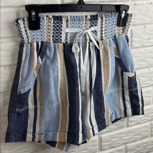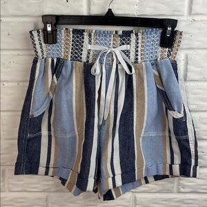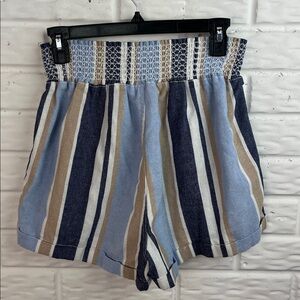 SIMPLY BLESSED SHORTS HIGH WAISTED STRIPES ELASTIC SMOCKED WAISTBAND CUFF LG JR