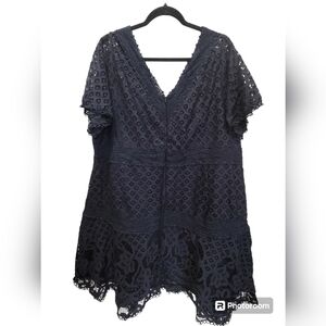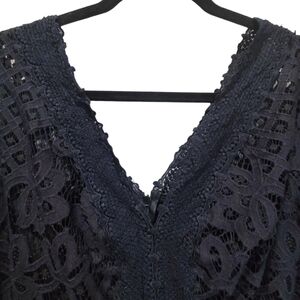 SIMPLY EMMA 3X Black Lace Short Sleeve Midi Dress with Liner Zippered Back