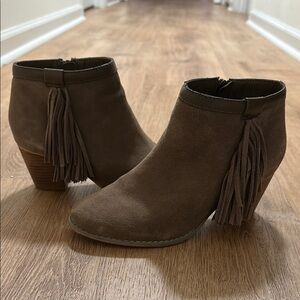 SIMPLY EMMA | Women’s Taryn Tan Suede Fringe Ankle Bootie