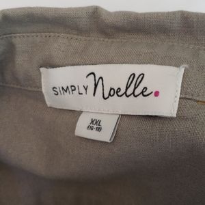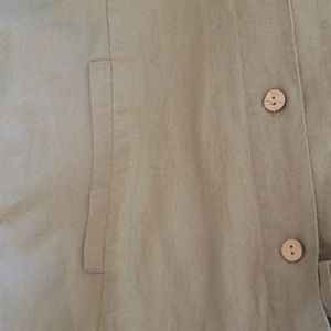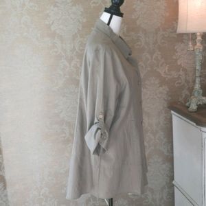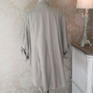 FANTASTIC FIT BUTTON DOWN LINEN TOP WITH A BIT OF FIT AND FLARE. LONGER IN THE BACK. HAS POCKETS. CUTE