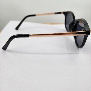 Keywords: sunglasses, black sunglasses, round sunglasses, gold accent, fashion eyewear, modern sunglasses, women's sunglasses, stylish sunglasses, eyewear, sun protection, designer inspired, chic sunglasses, trendy eyewear