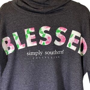 SIMPLY SOUTHERN Collection Women M Gray BLESSED floral spellout slouchy neck
