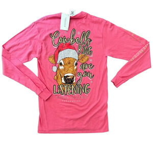 SIMPLY SOUTHERN Long Sleeve Christmas Tee Shirt Cowbells Ring Pink NWT Small