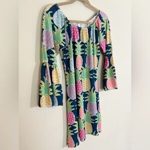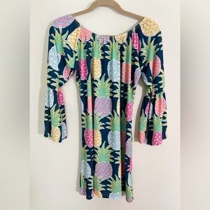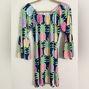 SIMPLY SOUTHERN Preppy Tropical Bell Sleeve Colorful Pineapple Mini Dress Size S