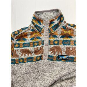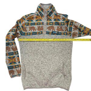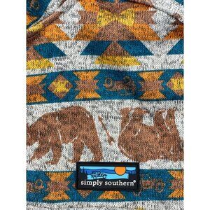 SIMPLY SOUTHERN Snap Neck Pullover "Southern Bear" Small Smoke Pockets Aztec EUC