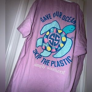 SIMPLY SOUTHERN T - Shirt Women's L Cotton Lavender Purple SS "Save Our Oceans"