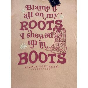 SIMPLY SOUTHERN XLarge “Blame it on My Roots I showed up in Boots” V-Neck TShirt