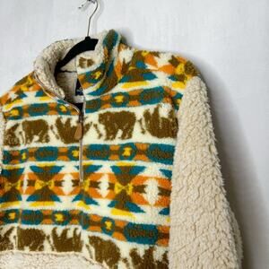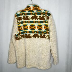 Simply Southern tan cream bear printed Aztec western tribal colorful cozy Sherpa quarter zip pullover jacket women’s size medium