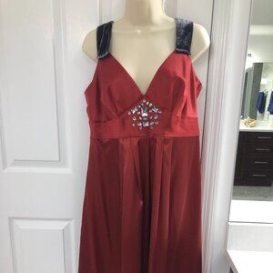Gorgeous NWT SIMPLY VERA by VERA WANG cocktail dress. Rust red satin color with grey velvet straps and jeweled chest. Size 12. (Size on paper tag reads 10, but dress tag is 12. I am going by the tag on the dress itself. Please check measurements.