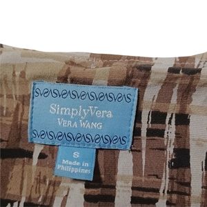 SIMPLY VERA Vera Wang Brown Tan Print Long Sleeve Ribbon Belt Midi Dress Small