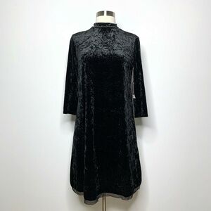 SIMPLY VERA Vera Wang Dress Women XS Black Crushed Velvet NWT 3/4 Sleeve Mock