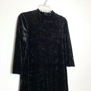 Black Velvet Dress. 3/4 Sleeve. Chiffon Hem. Hidden Back Zip. Mock Collar. NWT.