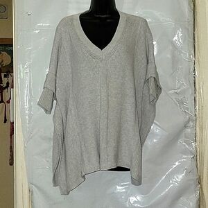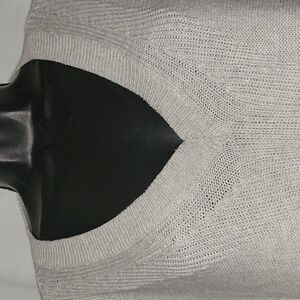 Elevate your wardrobe with this chic and stylish Simply Vera Vera Wang sweater. The batwing textured ribbed knit pullover features a V-neckline, long raglan sleeves, and an oversized fit. The solid gray color and striped accents make it perfect for any occasion, whether it's for business or leisure.