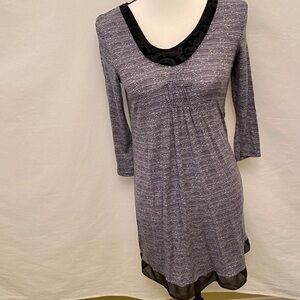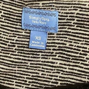 SIMPLY VERA WANG Pre-Owned Size XS, Black / White Dress, Crinoline Hem, Velvet Burnout Neckline. The front bustline has pleats, to accentuate bust and minimize tight fit on waist. Armpit to armpit measures approx 17” wide and has stretch. The base of back collar to hem measures approx 30” long.