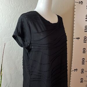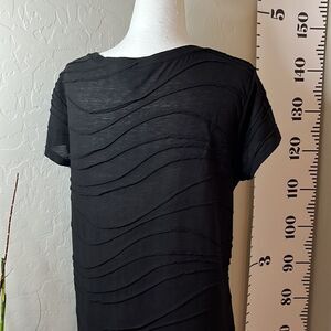 SIMPLY Vera Vera Wang short sleeve black T-shirt with wavy exposed seam design.