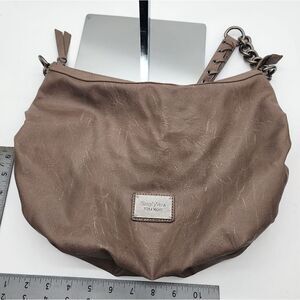 SIMPLY Vera Wang grey/puce Leather Purse Shoulder/Hobo Bag with Chain strap