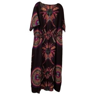 Beautiful print. A-line maxi dress by Simply Be. V neckline and short sleeves. Elastic in the waistband however it is NOT a drawstring (front bow is decorative only).