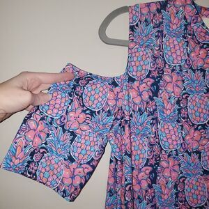SIMPLY SOUTHERN PINK BLUE PINEAPPLE PRINT COLD SHOULDER STRETCH DRESS W/ POCKETS