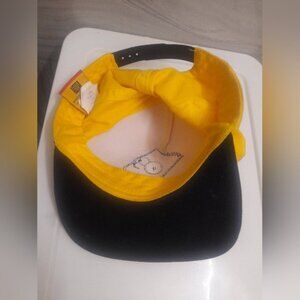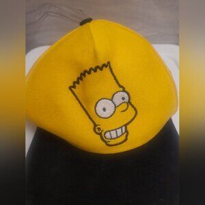Stylish cap featuring Bart Simpson. Bright yellow with a black brim.