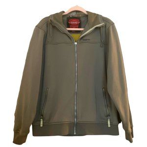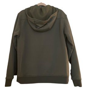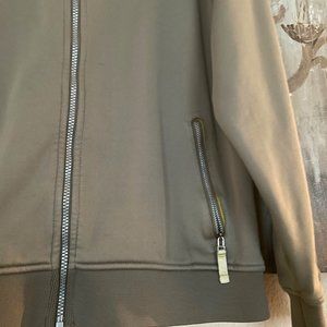 Zipper pull broke off but zipper still works ( will still zip up and down) and small hole on the bottom right sidelining. Otherwise, jacket is in good condition and looks good (see pictures)