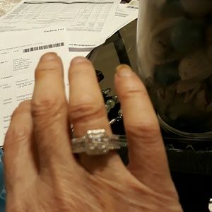 @teetsmom. This is a brand new ring. They are diamond substitutes, not real diamonds. There is nothing wrong with it at all. It is a gorgeous ring.