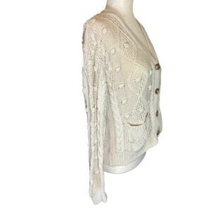 SINCERELY JULES Boho Cable Knit Sweater Cardigan Pockets Cream Small Cottagecore