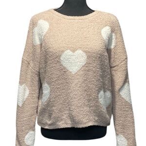 SINCERELY JULES Fluffy Beige Heart Pullover Sweater