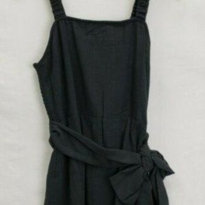A little black mini the destined for balmy nights on the horizon. Part of the Sincerely Jules Collection, the woven mini dress keeps laid-back lines with a crosshatch fabric, ruffle at the hem and wide tie belt. Finishing details include wide straps creating a square neck and smocking at the back for a fitted shape at the bodice.