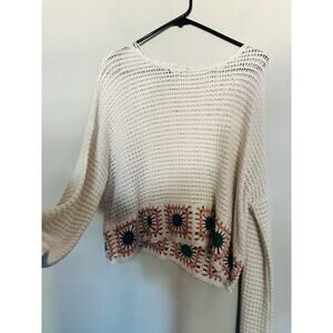 SINCERELY JULES White Green Square Granny Knitted Cottagecore Crop Sweater XL