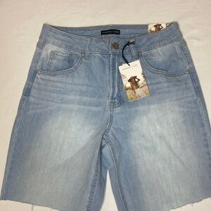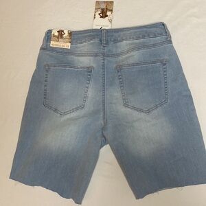 These were cut off after purchasing. High rise jean shorts. Faded in all the right places. 7in inseam. NWT