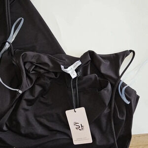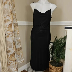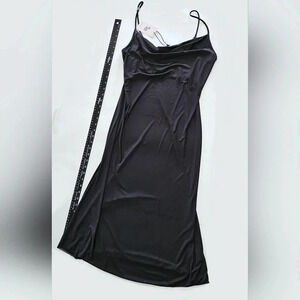 Sincerely Jules Satin Mid Maxi Dress scoop neck spaghetti strap, relaxed fit, has stretch black nwt