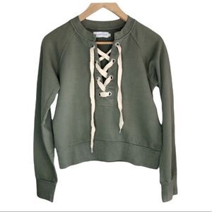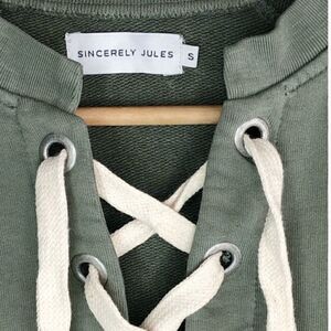 Sincerely Jules olive green lace up sweatshirt In excellent preowned condition...more like new Size S, cropped fit (runs small) 100% cotton