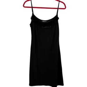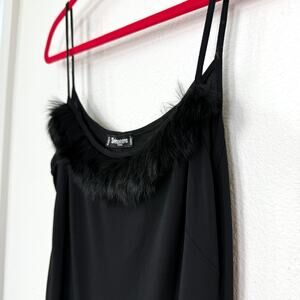 SINEQUANONE Paris Slip Dress Black Mini Spaghetti Strap Fur Trim Women Size M
