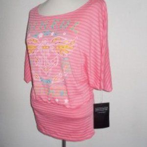 SINFUL BY AFFLICTION SIZE MEDIUM "LOVE & PRIDE" PINK DOLMAN SLEEVE UPRISING TOP